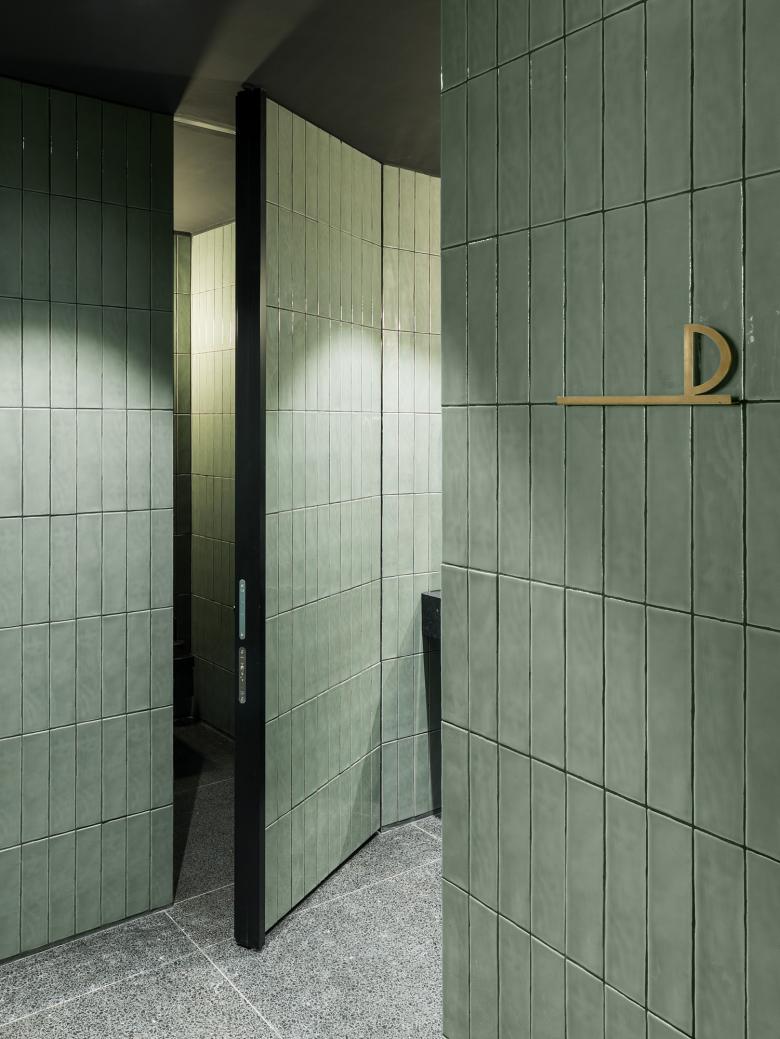 In einer begehbaren Kühlvitrine, in ein historisch anmutendes Zementfliesenkleid gehüllt und durch eine Industrieverglasung vom restlichen Raum getrennt, werden Schinken, Käse und andere Köstlichkeiten den Gästen zur Schau gestellt und animiert so zum Goutieren und kulinarischem Genießen.
