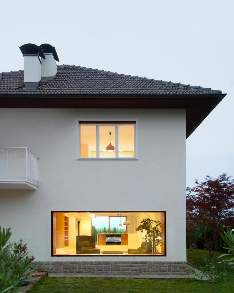 Surrounded by garden, this homestead had remained unaltered for decades. To the North, the house looks onto vineyards and the historic town centers of the area, with the mountain tops glowing on the horizon. On the southside of the property, the house is accessed by a driveway leading right up to it; and to the West and East, it’s accompanied by newer residential buildings. Originally, the ground floor and upper floor had the same layouts while functioning as separately autonomous living units. This would see a change, when a young family decided to move into this home and brought their own vision and expectations.