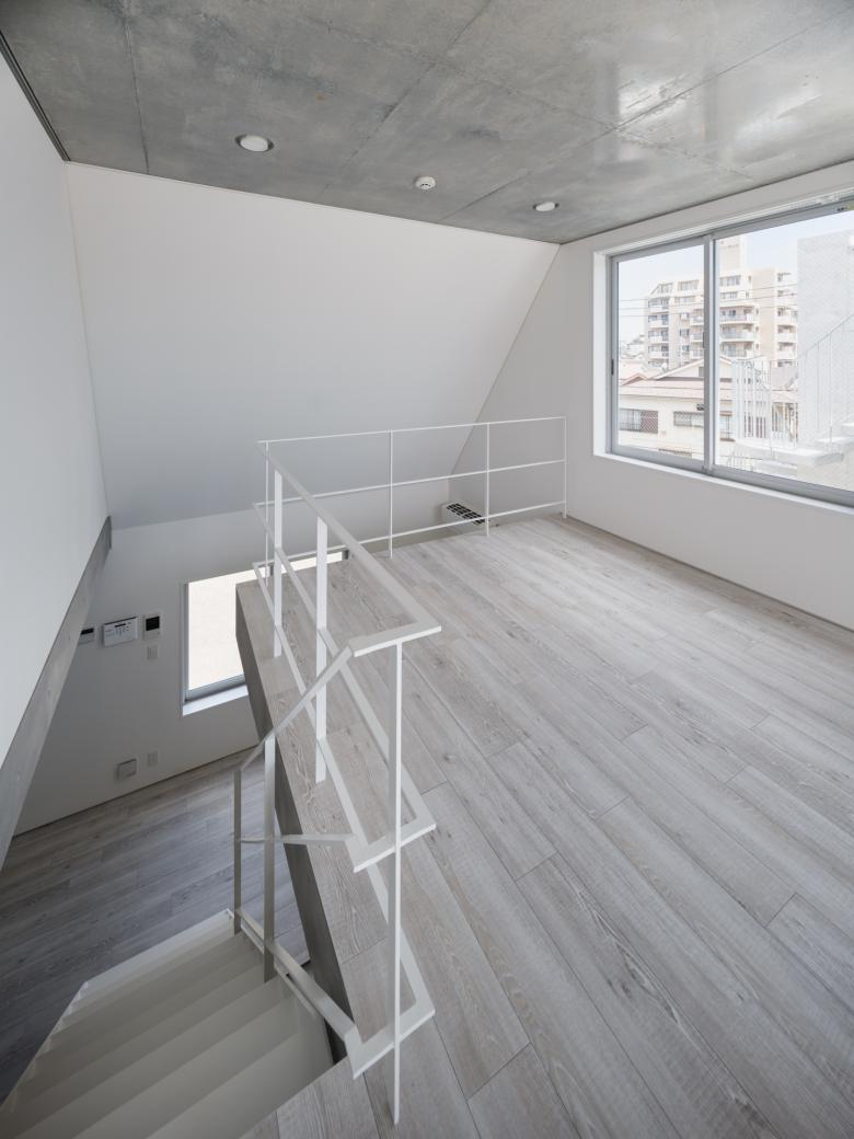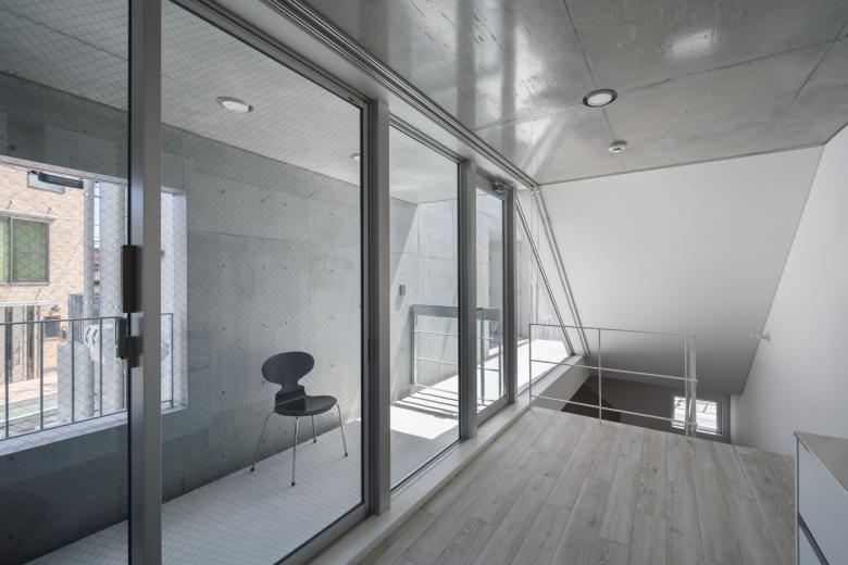 例えば、この建築において上述した基壇のような場をどのように呼べば良いか。空地的であるが、建築化されている。階段の踊り場のようであり、屋上広場にも思える。分棟や長屋といったある種の形式とそれをズラした脱形式を同時に重ねたような建築のあり方による場は、ズラされている訳なので現在において的確な名づけはない。名づけは形式化なので、何ともいい難いその場が制度から解放された建築の萌芽となるのだろう。