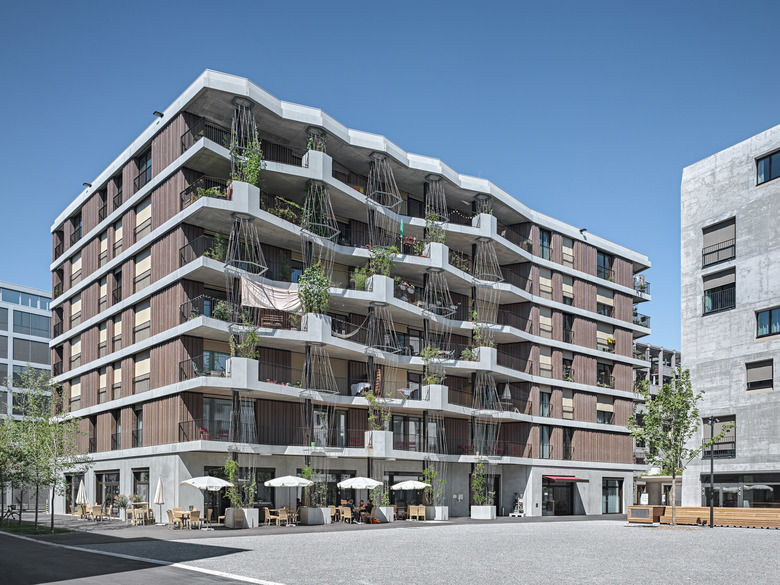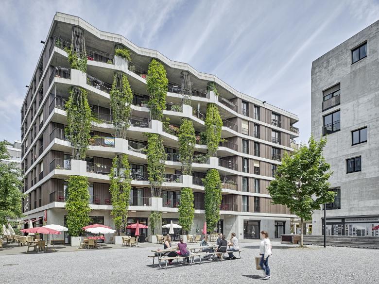 Das Haus E thematisiert einen vertikalen Garten zum Quartierplatz Dreizehn unterschiedliche Häuser formulieren ein neues Quartier in Zürich Leutschenbach. Unsere drei Häuser verfolgen unterschiedliche architektonische Ziele.