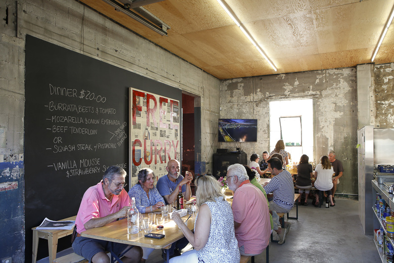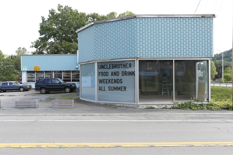 In Delaware County, New York, at the confluence of the East and West branches of the Delaware river, lies the small village of Hancock. The project is sited at the junction of the town’s two main thorough fares, East Front Street, and Route 97. A former auto mechanic’s garage and adjacent house were purchased by Gavin Brown’s Enterprise and the artist Rirkrit Tiravanija to be converted into a restaurant, gallery and residency space.
