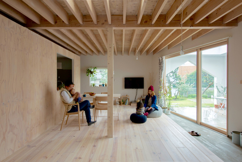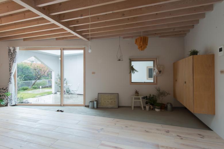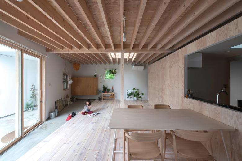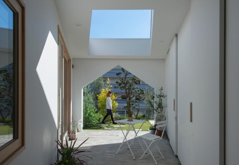 アレイは、空間に奥行きとゆとりを生み、そこではBBQをしたり、何気なくお茶をしたり。上部は屋根がかかっているものの大きな吹き抜けが存在し、夏には程よく日差しを遮り、冬には奥深く暖かい光を送り込んでくれる。雨の日でも歩行ができ、それでいて雨水の落ちる光景も感じれる。そして、綺麗にトリミングされたSORA。