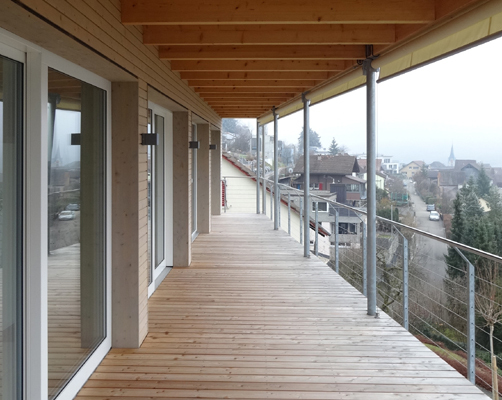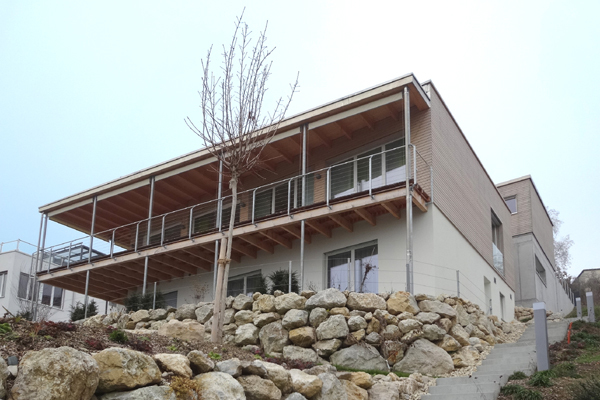 Jeweils das untere Geschoss wurde in Massivbauweise und das obere Geschoss in Holzbauweise erstellt.