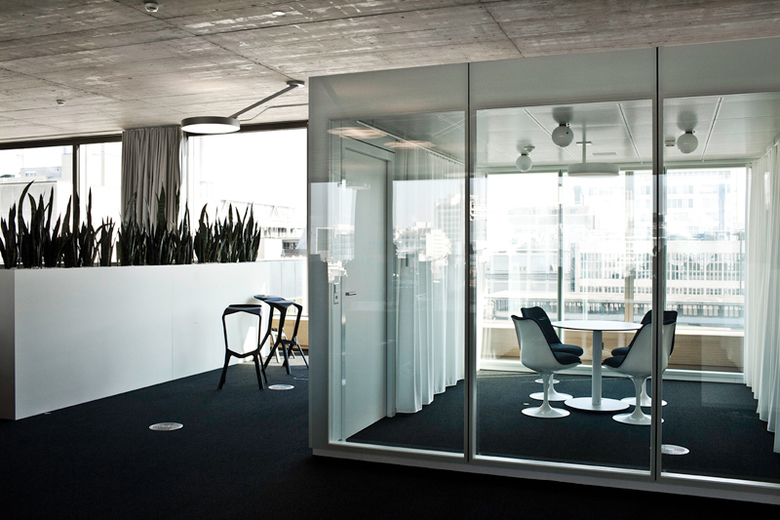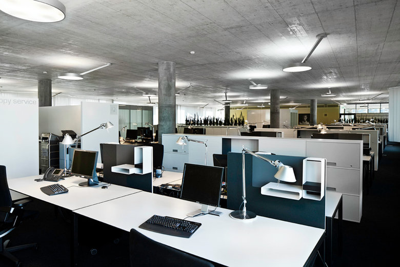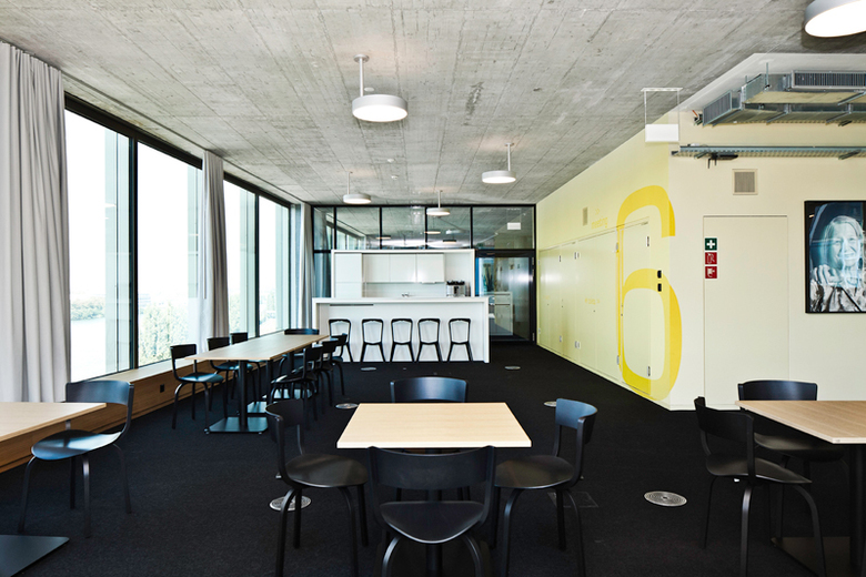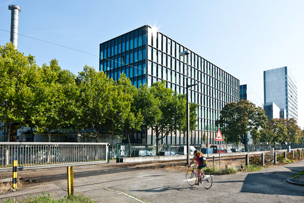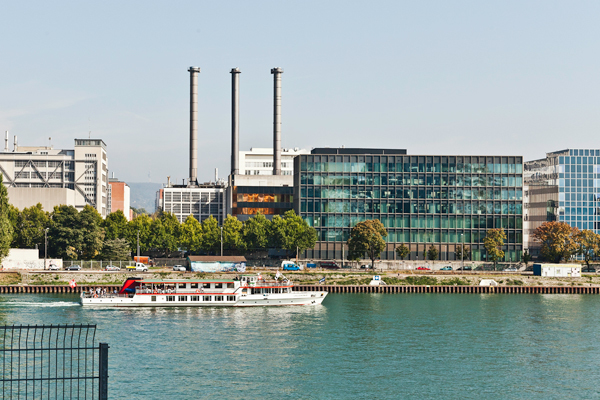 Das von OOS geplant und umgesetzte Büro- und Servicecenter im Werk Klybeck in Basel steht direkt am Rhein und gibt mit seiner Glasfassade einen wunderbaren Blick auf den Fluss und den gegenüberliegenden Novartis Campus frei.