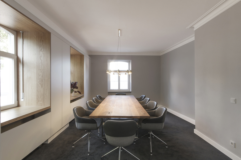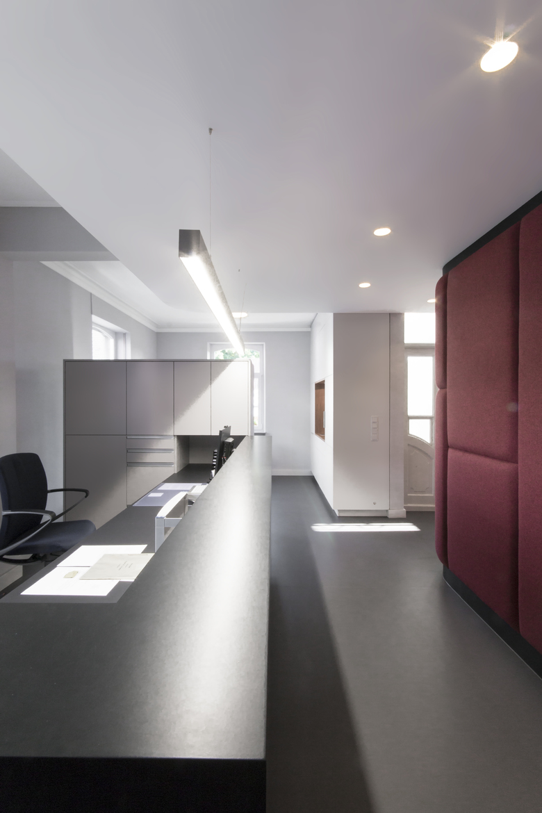In einem denkmalgeschützten Haus im historischen Kern Plochingens ist ein modernes Notariat entstanden, das den Spagat zwischen Amtswürden, einer entstaubten Raumatmosphäre und dem respektvollen Umgang mit der historischen Substanz versucht.