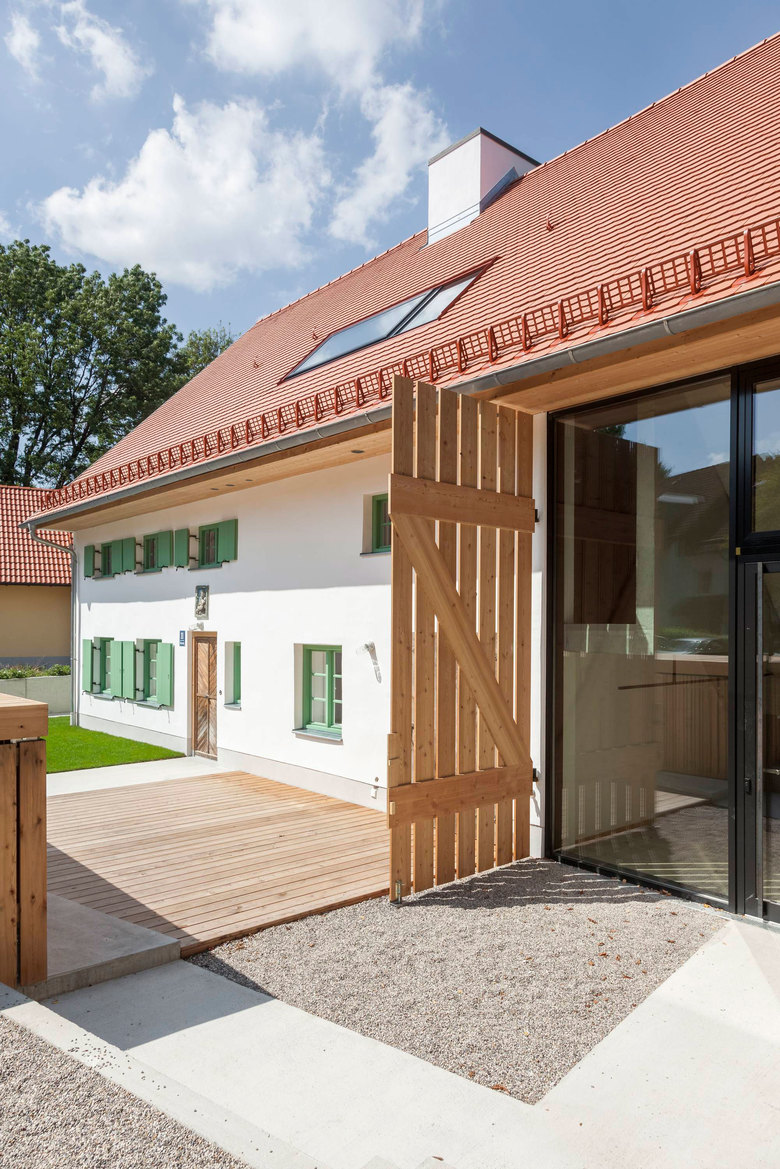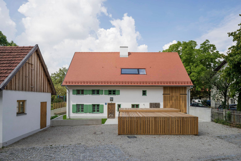 Das Haus eines Schusterbauern wurde im 18. Jahrhundert in Alt-Riem bei München erbaut. Fast gänzlich verfallen und unter Denkmalschutz stehend, wird es 2013 von Stefan F. Höglmaier erworben. Er selbst nimmt sich der anspruchsvollen Transformation dieses historischen Bauernhauses an und schafft damit ein wegweisendes Beispiel im Umgang mit Baudenkmälern. In Zusammenarbeit mit dem Architekten Peter Haimerl wird das Haus auf spektakuläre Weise in ein Zweifamilienhaus transformiert.