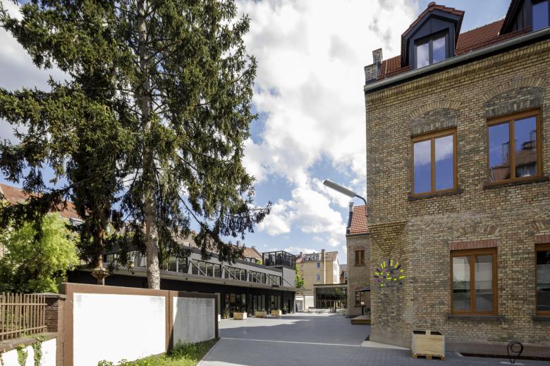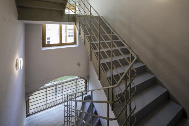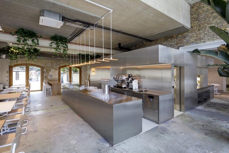 Durch die Revitalisierung der 120 Jahre alten Gebäude bot sich die Chance, auch das Blockinnere wieder zu beleben und mit einer neuen Gastronomie zum Treffpunkt im Quartier zu machen. Dabei wurden der alte Industriecharakter erhalten, die unterschiedlichen Zeitschichten sorgsam freigelegt und die Nutzung als coworking-space an die Gegebenheiten der Gebäude angepasst statt umgekehrt. Entstanden ist ein lebendiger Ort, der viel erzählt von hundert Jahren Stadt- und Wirtschaftsgeschichte und der zugleich ganz neue Arbeits- und Kreativitätskonzepte zulässt.