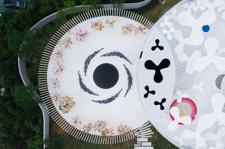 White Upland can also be read, mosaiced with symbols representing different scenes on the ground. These abstract signs are actually words specially designed for this steel garden. They help you understand the language of dreams and read it more thoroughly