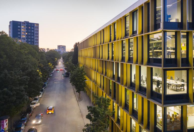 Tageslicht- und präsenzgesteuerte Beleuchtung im Inneren und außenliegender Sonnenschutz sorgen für optimierten Energieeintrag und machen das Gebäude im Winter und Sommer nachhaltig und wirtschaftlich.