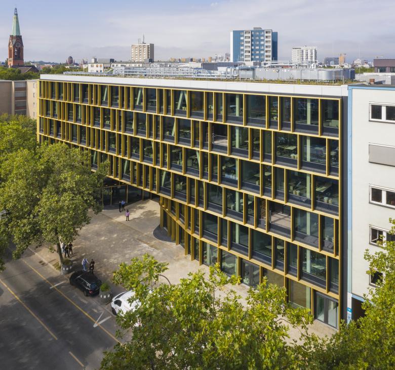 - BGF 24.000 m² (unterirdisch und oberirdisch) Vermietbare Fläche ca. 18.000 m², 80 PKW-Stellplätze in der eingeschossigen Tiefgarage, 8 mgl. Ladestationen für Elektrofahrzeuge, 190 Fahrradstellplätze in der Tiefgarage