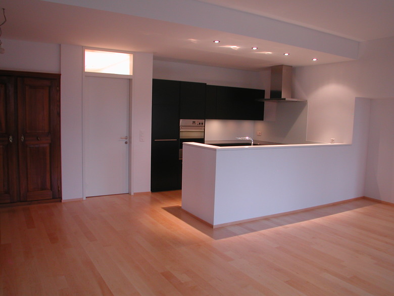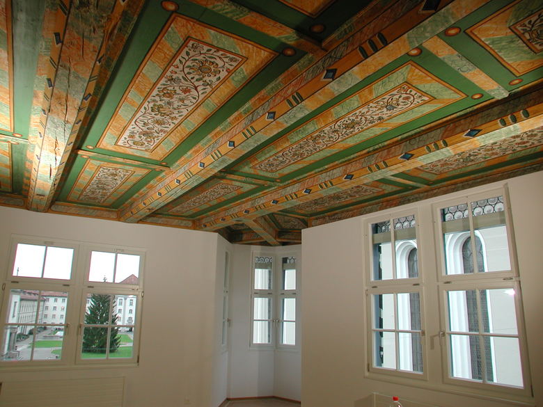 Mit dem Umbau wurden auf allen Geschossen wieder Wohnungen eingebaut. Dabei galt es, die noch vorhandenen alten Bauteile zu integrieren und die Gebäudestruktur wieder in die ursprüngliche Form zurückzuführen. Insbesondere waren der Gewölbekeller, die Täferzimmer im 2.Obergeschoss, die bemalten Decken im 3.Obergeschoss sowie die Dachkonstruktion im 4. und 5.Ober-geschoss zu restaurieren.