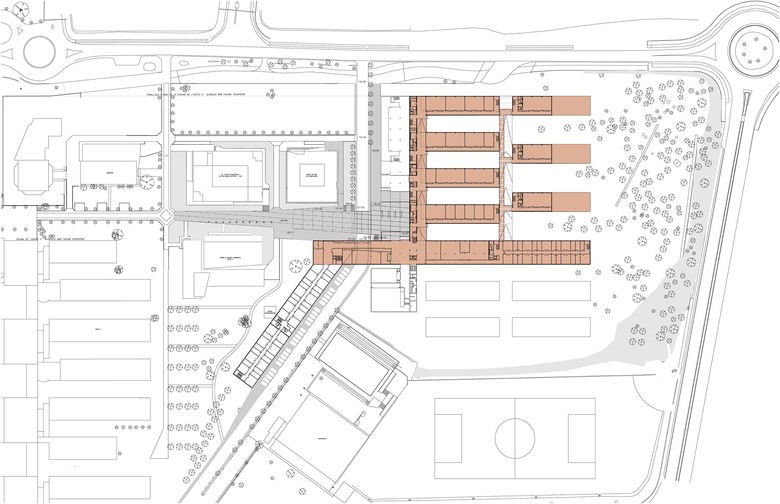 The Project considers the educational and teaching spaces required by the Engineering degrees. The building is organized in a main block that contains the common services and departments of the School. From this building, comes a communication axis that connects the different class-room branches, distributed in parallel blocks that facilitate the construction and enlargement by phases. The set includes class-rooms, laboratories, departments and teachers-rooms, study rooms, dining area, etc.