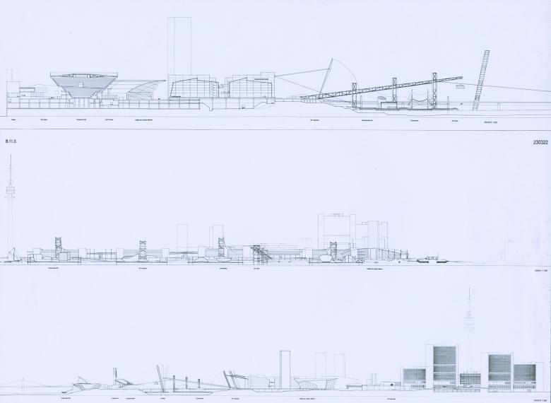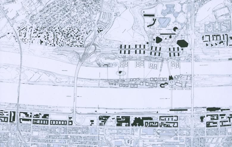 Die Sequenzen orthogonal zur Donau sind von unterschiedlicher Erlebnisqualität, der Plan ähnelt einer Partitur, Rhythmik und Bewegung reflektieren den Tenor der EXPO.