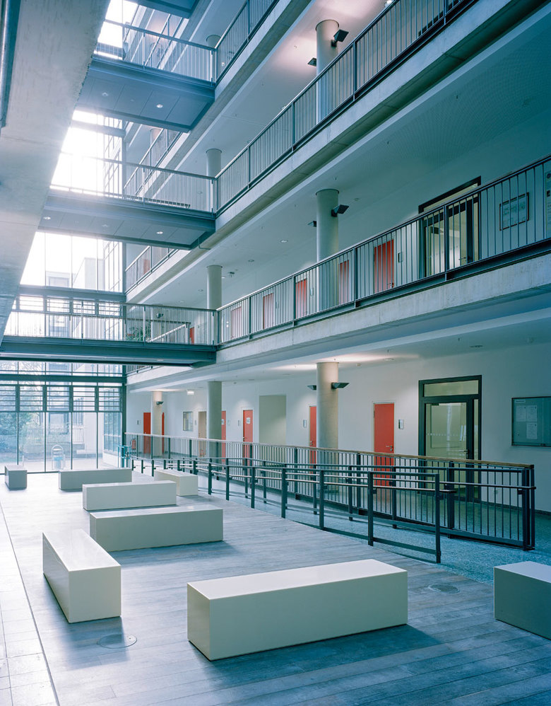 Der 6-geschossige Neubau ist in den Regelgeschossen als 5-Bund ausgebildet. Flexibel nutzbare Labor- und Büroeinheiten sind nach Arbeitsgruppen unterteilt, begrünte Zonen fungieren als kommunikative Bewegungsflächen. Im Eingangsgeschoß befinden sich die öffentlichen Nutzungen wie Hörsäle, Praktikumsräume und Bibliothek. Vertikale Lufträume verbinden öffentlichen Bereiche mit den Institutsebenen. Das Dachgewächshaus verzahnt sich in der Vertikalen mit der inneren Erschließungsfuge.