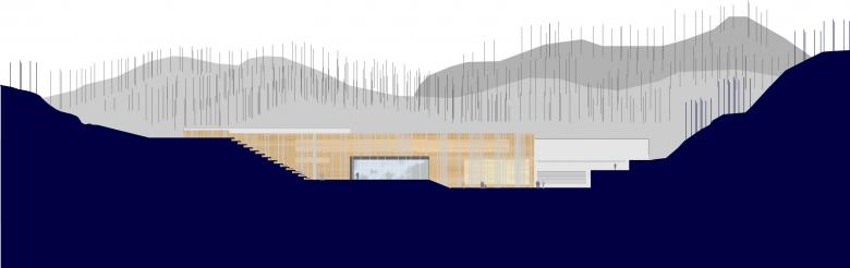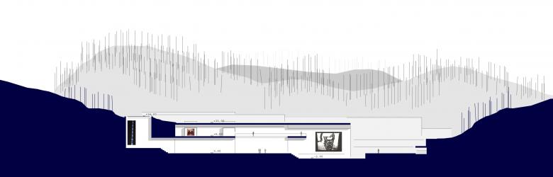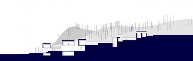Therefore, different levels, plateaus, terraces and building elements are integrated into the existing topography of the site to contrast to the untouched open area. This creates an interacting dialogue of art and landscape which offers the visitors attractive view connections between in and outside, transparent and closed building parts and the sceneries.