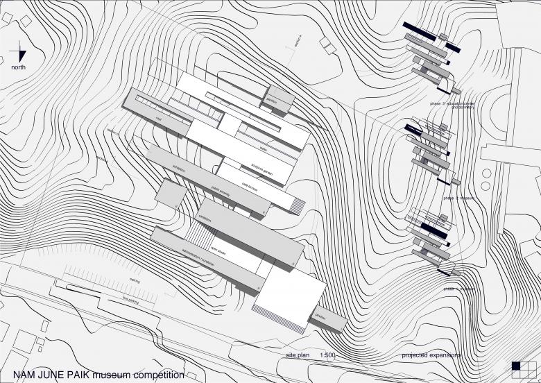 The concept of the new museum for the Korean video artist Nam June Paik consists of an exciting dialogue between exhibition and open spaces, as well as building volumes and landscape. The complex is an integral element of a sophisticated landscape concept consisting of a contention of art and nature.