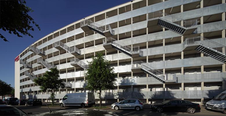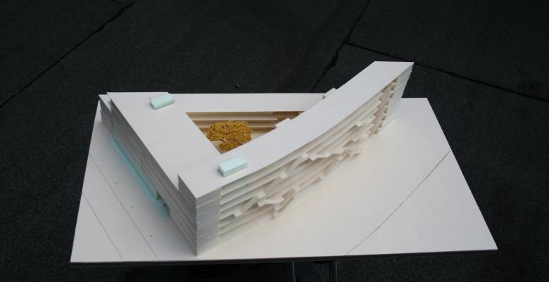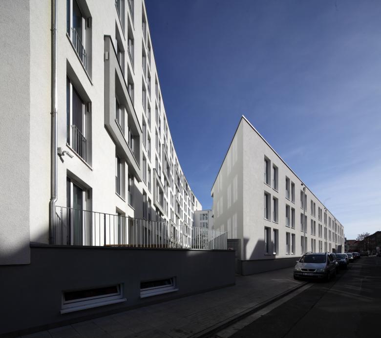 Der Erschließungs- und der Gemeinschaftsbereich sind zur öffentlichen Grünfläche hin ausgerichtet. In den übrigen Flächen des Erdgeschosses und den oberen Geschossen werden über offene Laubengänge und einen Erschließungsflur im südlichen Bauteil insgesamt 302 Apartments für studentisches Wohnen erschlossen. Die Appartements orientieren sich mit den Aufenthaltsräumen zu den lärmabgewandten Seiten und dem Innenhof.