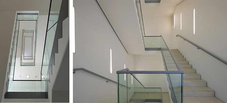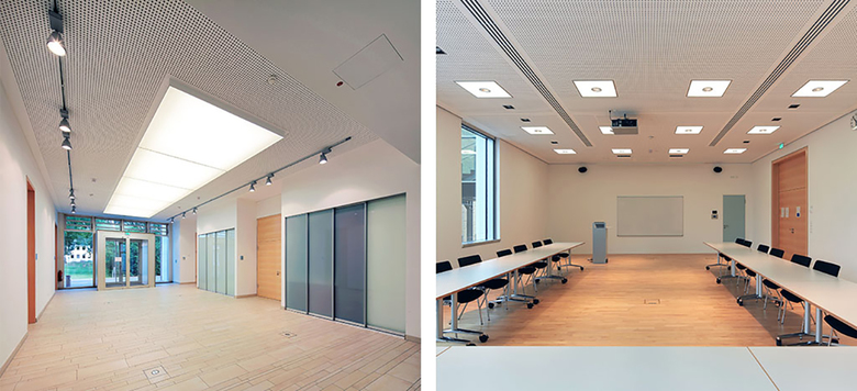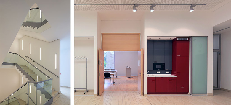 Das Gebäude wurde an zwei Stellen mit den Altbauten verbunden, hierbei wurde ein Lastenaufzug zu einem Durchlader umgebaut werden, um den Anschluss an den Neubau zu gewährleisten.