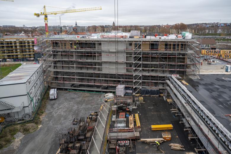 Die Konstruktion als moderner Hybridbau verbunden mit der besonderen Lage und den hohen Anforderungen an Nachhaltigkeit und das pädagogische Konzept erforderte eine intensive Zusammenarbeit aller am Bau Beteiligten. Der erste Meilenstein wurde nach nur rund 16 Monaten Bauzeit mit dem Richtfest gefeiert. Die Schülerinnen und Schüler der Ganztagesgrundschule sowie die Kitakinder sollen zum Schuljahr 2025/26 einziehen. Der Start des Volkshochschul-Betriebs ist für Sommer 2025 vorgesehen.