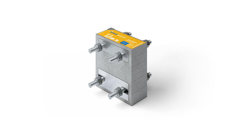 Es kommen Elemente des Isokorb T Typ SK zum Einsatz, die aus einem 80 Millimeter dicken Dämmblock aus Polystyrol-Schaum bestehen. Zur Übertragung der Lasten werden Edelstahlbolzen und Rechteck-Hohlprofile verwendet.