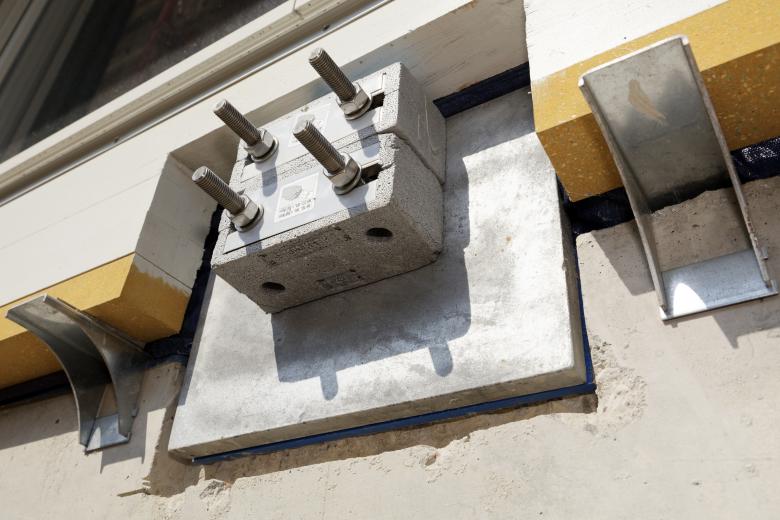 „Statisch war es bei der Konstruktion notwendig, je zwei Isokorb Elemente übereinander anzuordnen, um einen biegesteifen Anschluss zu erhalten. Der Isokorb übernimmt in dieser Konstruktion nicht nur die Funktion der thermischen Trennung, sondern überträgt auch die Schnittkräfte der angeschlossenen Stahlträger“, erklärt Michael Kühl.