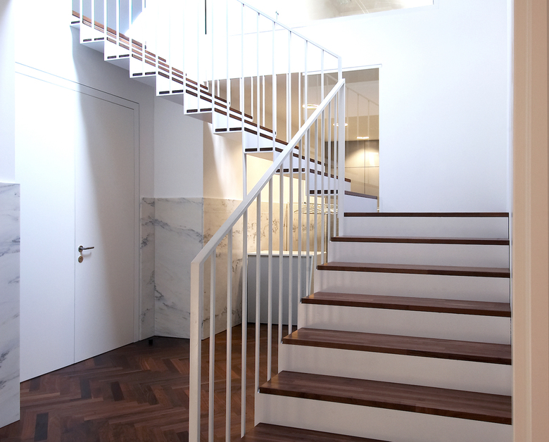 Dachausbau eines Gründerzeithauses an der 2er-Linie mit einem Vortragssaal, Besprechungs- und Beratungsräumen sowie Büroarbeitsplätzen auf der Galerieebene. Durch einen Materialmix aus Marmor, Nussholz, Stahl, Glas und Stoffbespannungen soll sich Massivität mit Leichtigkeit und Transparenz verbinden, zeitgenössisch und tradiert.