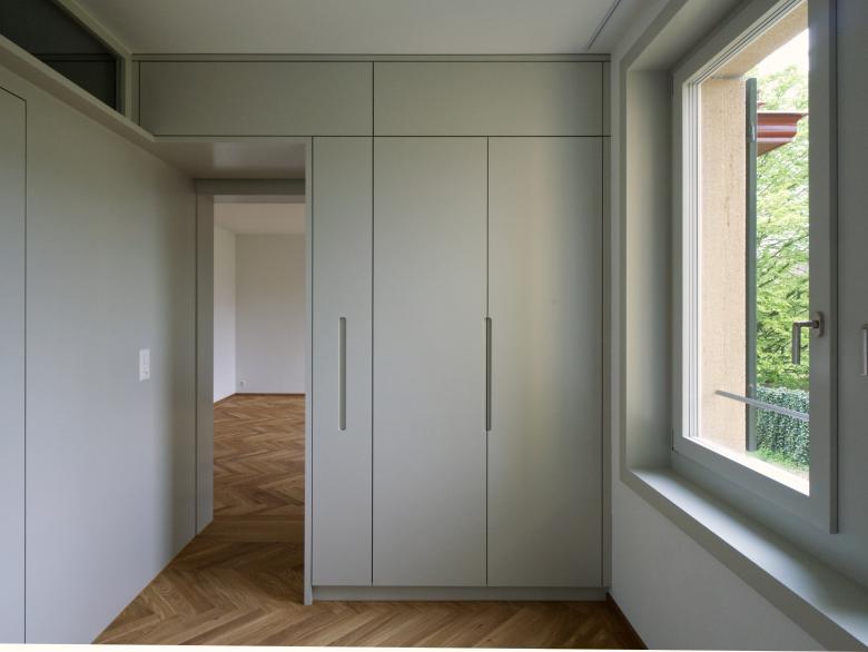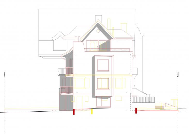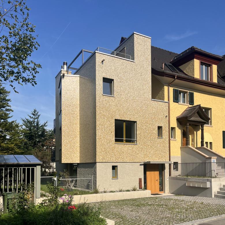 Die Überbauungsziffer war im Bestand bereits ausgeschöpft. Mit einer Aufstockung des 1926 angebauten Garagenteils und dem Ausbau des Untergeschosses konnte die Ausnützung aber noch etwas erhöht werden.