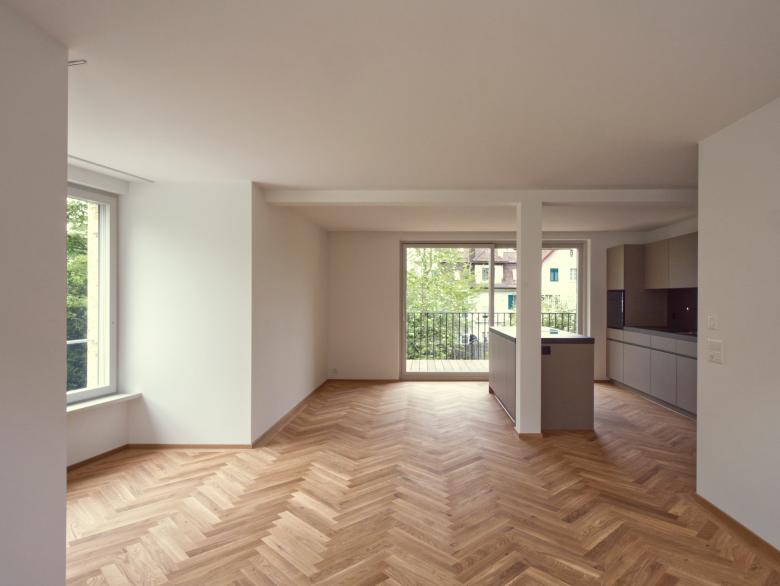 Das stattliche, mit der Nachbarliegenschaft zusammengebaute Einfamilienhaus von 1917 steht in einem durch-grünten Wohngebiet am Zürichberg. Die vier neuen EigentümerInnen wünschten die Umwandlung des Hauses zu je einer Eigentumswohnung.