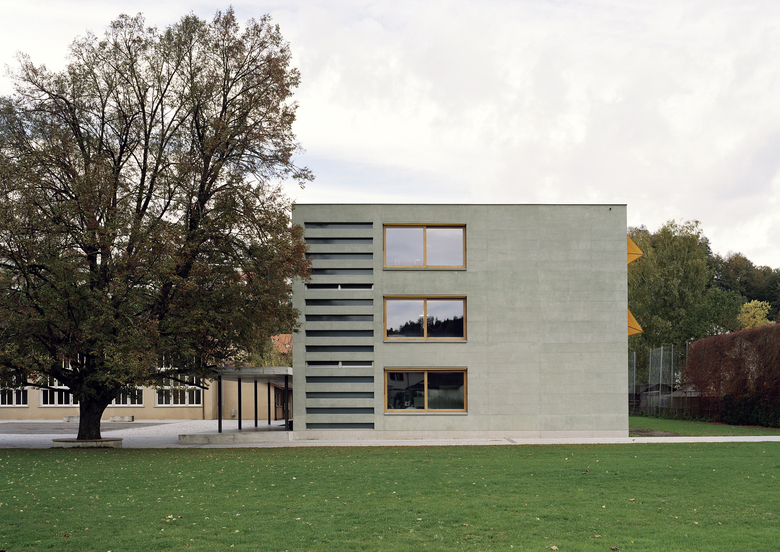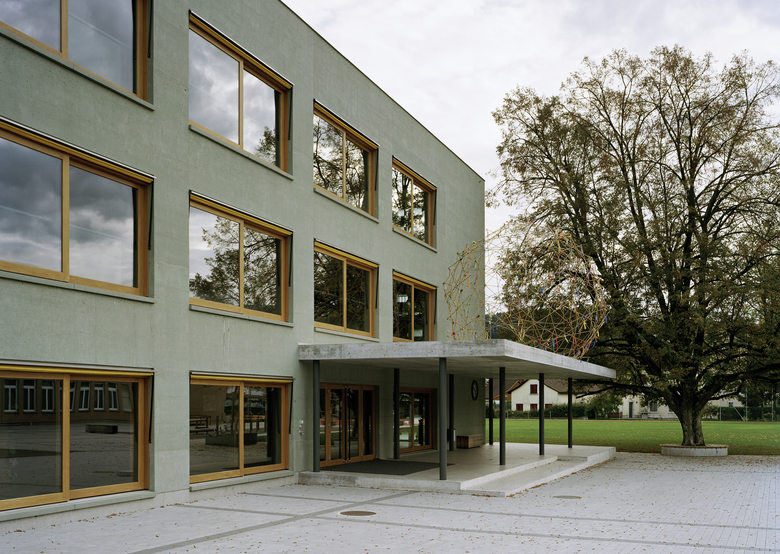 Erweiterung einer Primarschulanlage um einen Neubautrakt mit neun Klassenzimmern. Das Gebäude ist so gesetzt, dass zwischen dem bestehenden Schulhaus und dem Neubau ein räumlich klar gefasster Schulhausplatz entsteht.