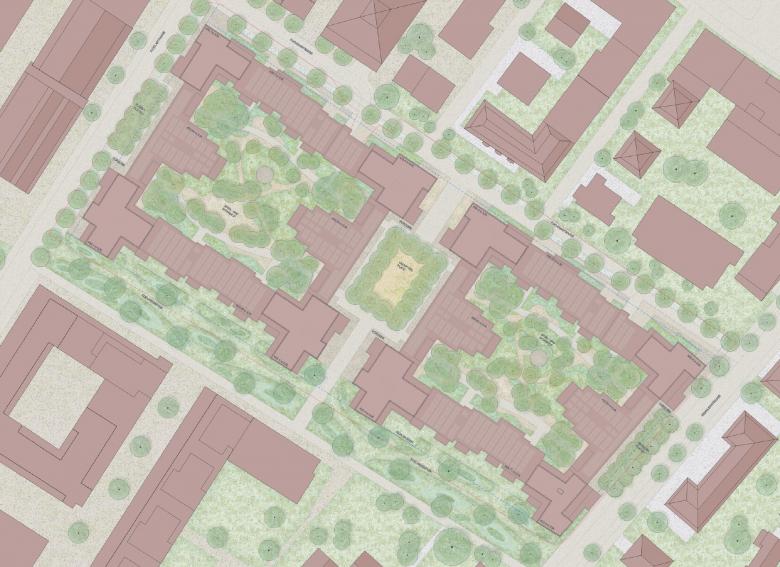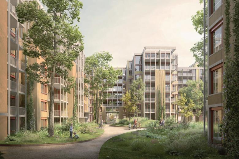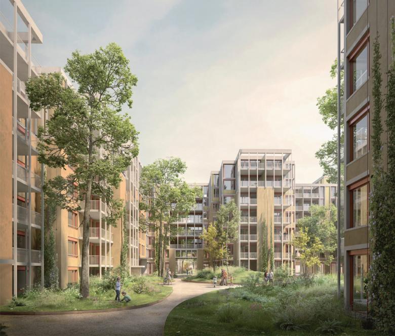 Die bestehende Wohnsiedlung Dennlerstrasse soll nachverdichtet und aufgewertet werden. Wo möglich werden die Gebäude erhalten, saniert und aufgestockt. Um die städtebauliche Situation zu klären und die Aussenräume klarer zu fassen, wird der Bestand zudem um neue Volumina ergänzt. Durch die interdisziplinär entwickelte Bebauungsstruktur werden die Aussenräume lesbarer, der Identifikationswert der Räume gesteigert und die Entwicklung einer neuen Mitte hilft bei der Klärung sozialräumlicher Übergänge. Zwei öffentliche Quartierstrassen an den Köpfen, eine Wohnstrasse und ein Park an den Flanken, ein siedlungsbezogener Quartierplatz in der Mitte und hausbezogene ruhige Oasen in den Höfen bilden eine vielversprechende Grundlage für ein lebenswertes neues Stadtquartier.
