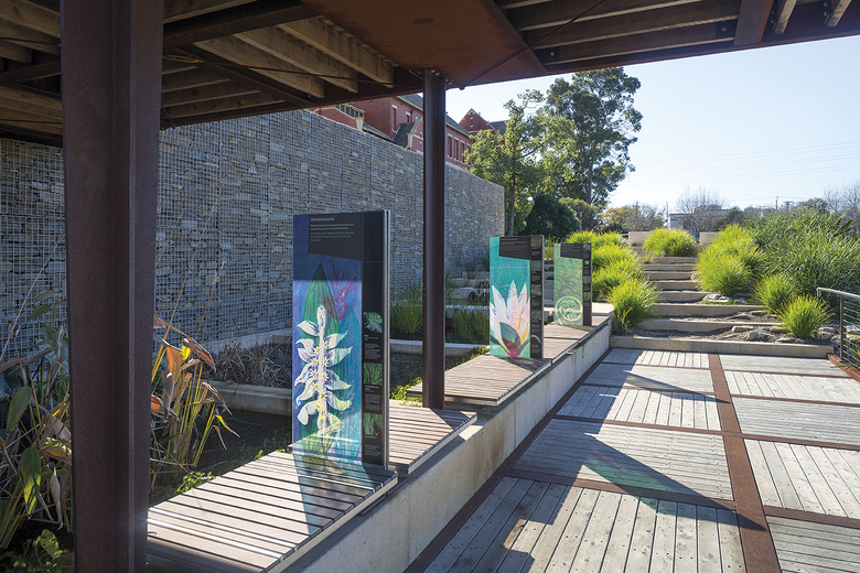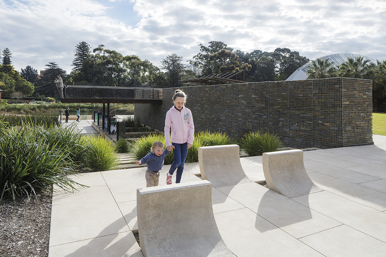 The Adelaide Botanic Gardens Wetland is located on First Creek, a highly urbanised waterway near the centre of Adelaide. The wetland ameliorates flooding, purifies polluted stormwater runoff, is the source for an Aquifer Storage and Recovery (ASR) system, provides habitat and is an educational and recreational resource.