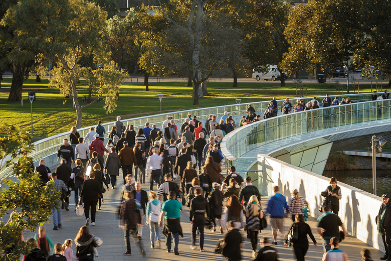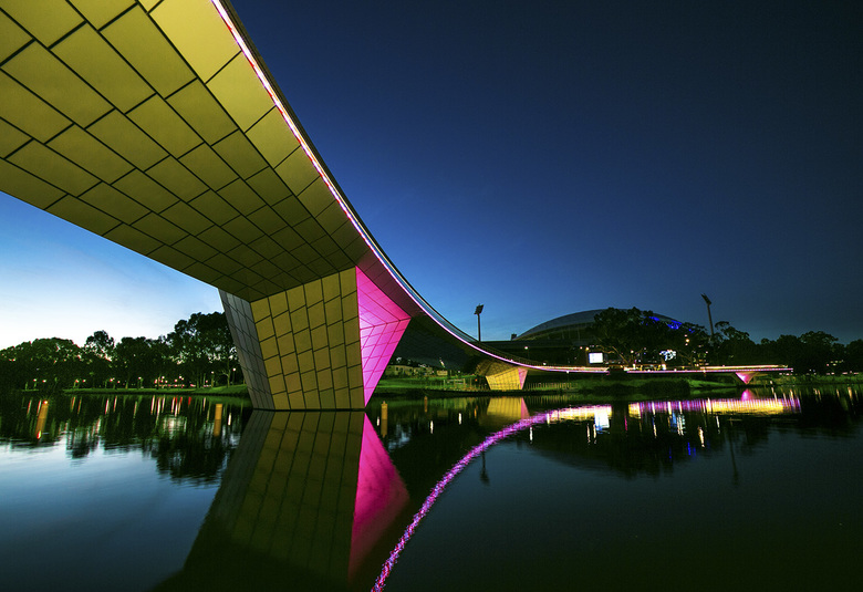 The Riverbank Pedestrian Bridge provides a vital connection between the city’s highly visited Adelaide Festival Centre, Adelaide Railway Station and the recently redeveloped Adelaide Oval. The 255 meter long bridge was constructed by McConnell Dowell and arcs over the Torrens, connecting two key destination points on the north and south banks. The upgraded connection points provide activated destinations at each end of the bridge, with interactive elements including lighing and water features.