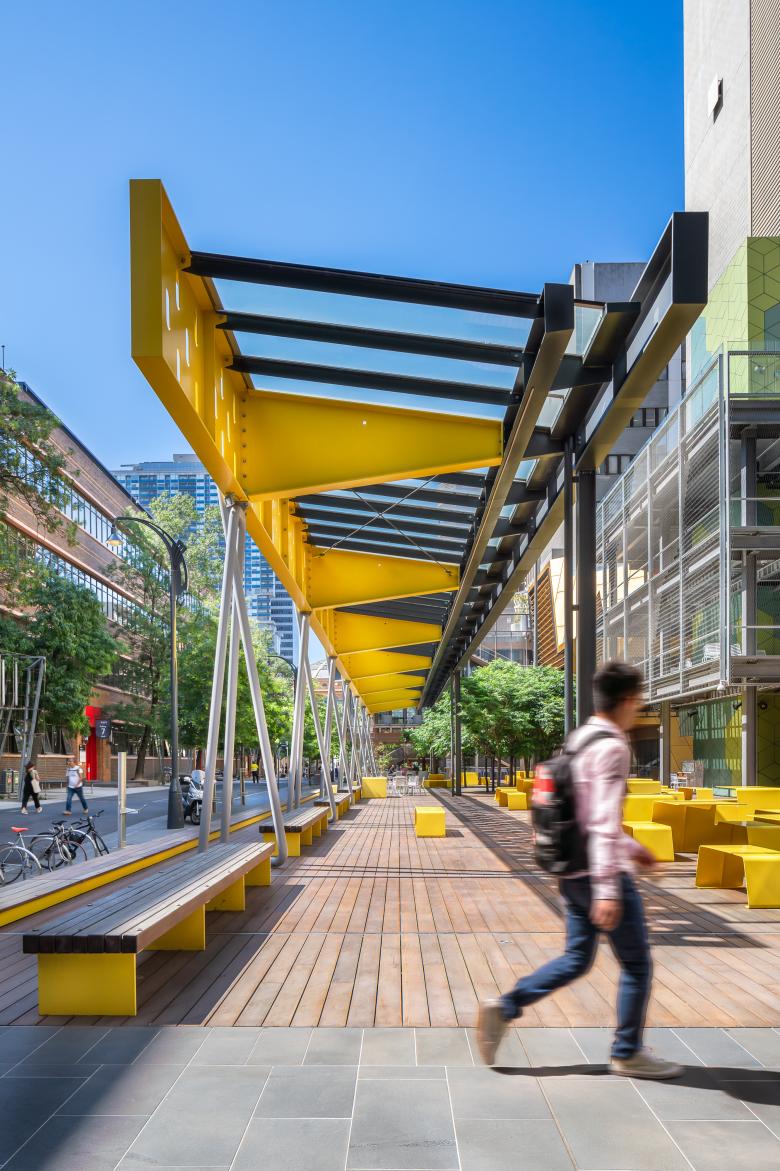 new student spaces along the Bowen Street Terrace. The design looks at consolidating this precinct as the student heart of the campus with a new timber
