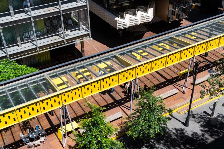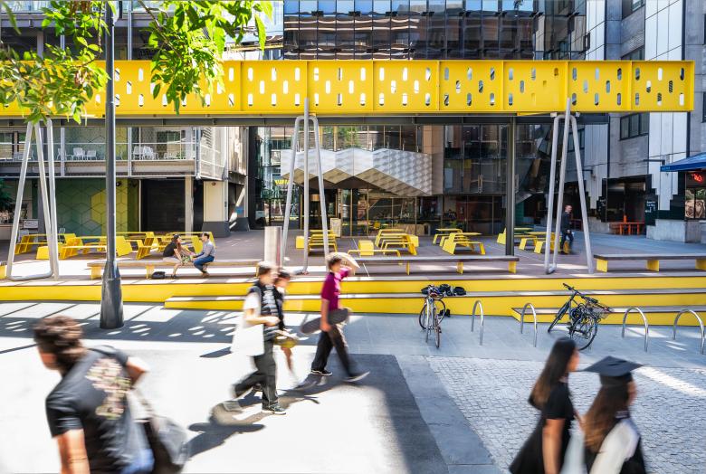 Street. The project will address key issues of the precinct, including reactivating the Swanston Street frontage, providing new links from this spine to Bowen Street, provide new library services and student services and a new food and retail heart.