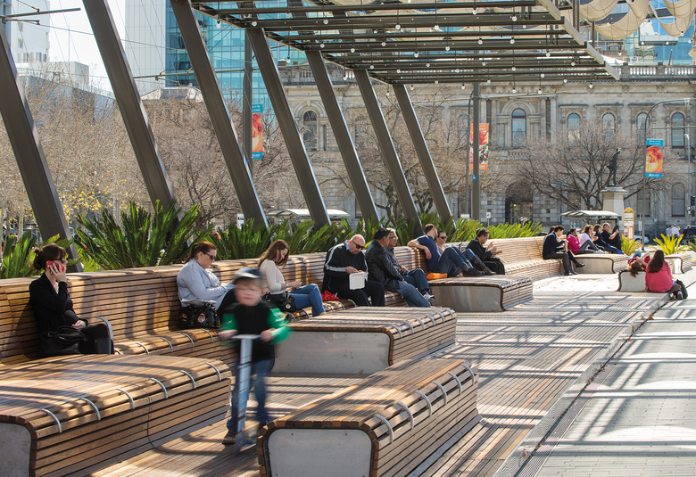 Stage 1 commences the implementation of a revitalized Victoria Square/ Tarndanyangga and is based on the first fully endorsed Masterplan for the Square in 40 years. This regeneration creates a people focused heart for the city which facilitates everyday community expression and supports ever changing events and festivities.