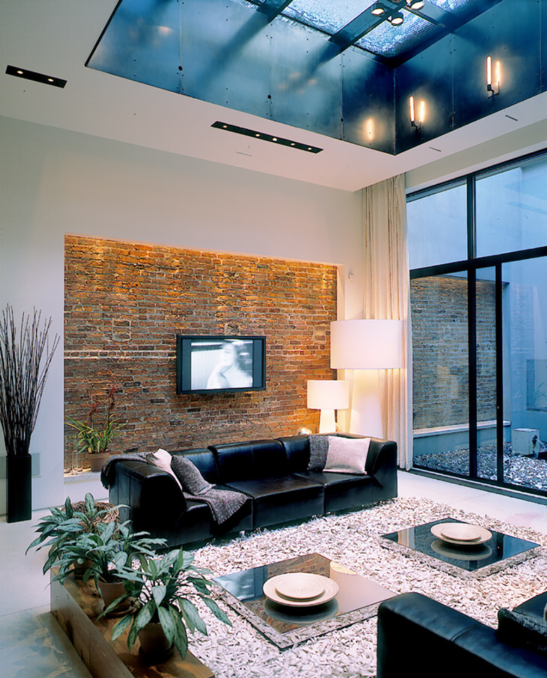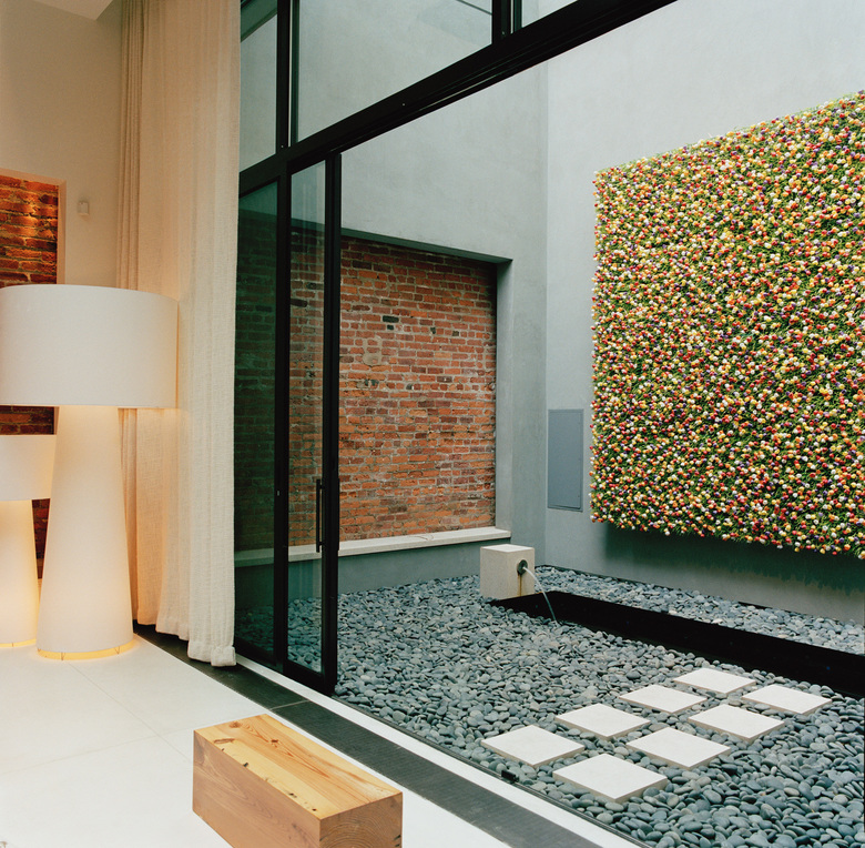 Our overall goal in designing this home – nearly from scratch in the shell of an historic structure – was to fill it with meticulous modern detail and offer every amenity, while making it feel pleasingly established and comfortable, as though it had always been there. Although the original interiors were entirely demolished, we were able to save some elements and adapt them for reuse in the new townhouse. The structure’s original timbers became stair treads and areas of a brick wall were exposed to provide visual interest and texture in the main living space. The original external brick façade was partially preserved, with a steel, wood and “green screen” added for promoting plant growth on second floor and rooftop garden areas.
