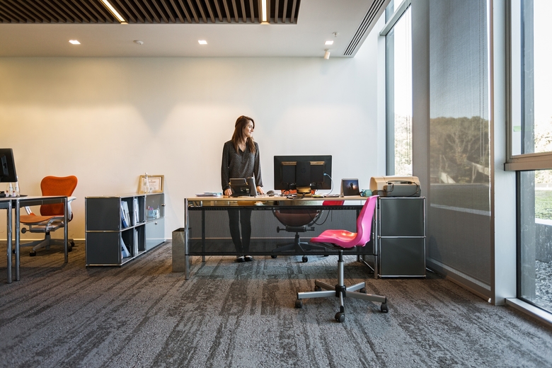 Das war für die Beschäftigten von Roche nicht immer so. Das Unternehmen war früher in einem typischen hierarchischen Gebäude mit 17 Stockwerken untergebracht. Auf jedem Stockwerk befand sich eine Abteilung, und der Geschäftsführer residierte ganz oben. „In den neuen Räumen hat niemand mehr sein eigenes Büro. Selbst unser Geschäftsführer Adriano Treve sitzt nur drei Schreibtische von mir entfernt“, sagt Frau Koyuncu. „Mit dieser sorgfältig durchdachten Innenarchitektur kann man mit allen Mitarbeitern reden und der mit Hierarchien verbundene tägliche Stress ist Schnee von gestern.“