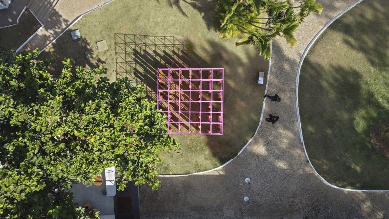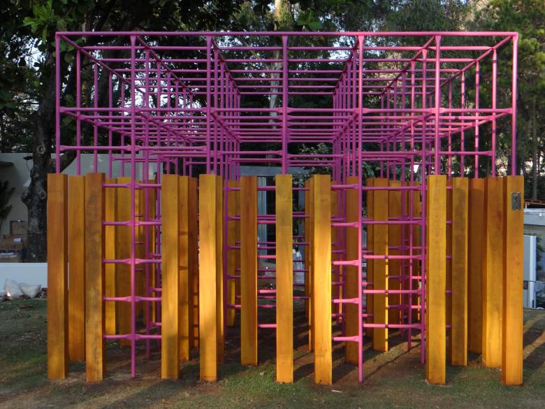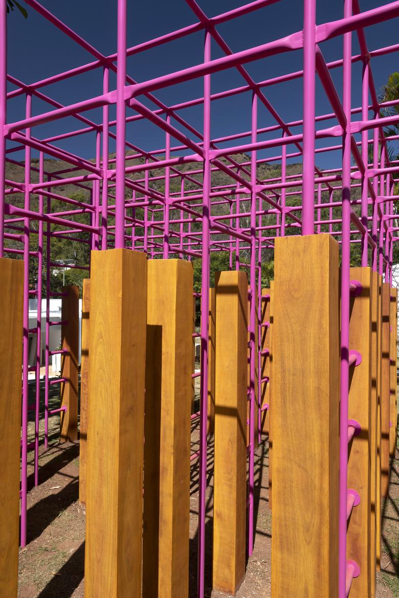 The Labyrinth Playground was built in the gardens of Palácio das Mangabeiras, the former residence of the governor of the State of Minas Gerais, Brazil. Since 2019, the Palace has become a park open to public visitation and shows. The Labyrinth is part of the park's permanent public spaces and is also part of the temporary exhibitions circuit.