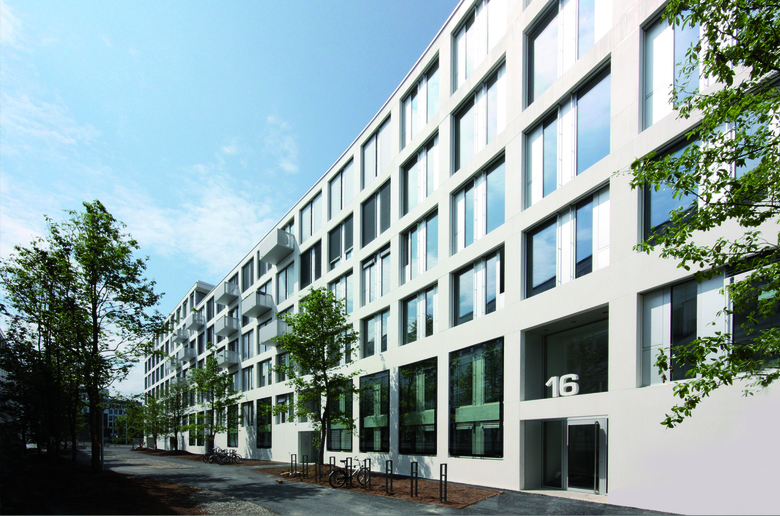 Edendrei bildet städtebaulich die Verlängerung des gebogenen Gebäudes Staffelstrasse 8–12 und generiert so einen klaren, selbstverständlichen Abschluss gegen die Sihltalbahn. Ein strenges Grundraster analog der umliegenden Gewerbebauten prägt den Baukörper.