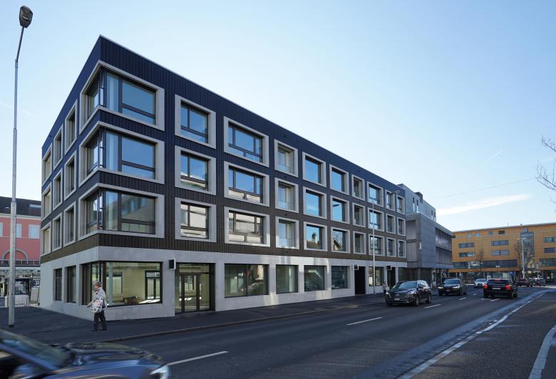 Der Neubau ist Bestandteil des Bebauungsplanes Rathausplatz im Zentrum von Baar. In diesem Bebauungsplan sind die Position und das Volumen des Baukörpers festgelegt. Damit bestand die Aufgabe darin, das bereits definierte Bauvolumen in der Erscheinung von Struktur, Materialität und Farbigkeit in den Bestand der Zentrumsbauten zu integrieren. Dies geschieht primär über die sorgfältig gestalteten Zargen sowie die Sockelausbildung aus Betonelementen, welche einen Bezug zum alten Schulhaus bilden.