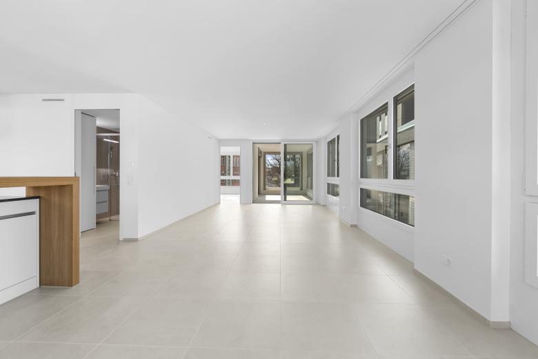 Sämtliche Wohnungen sind gegen den ruhigen, südlich gelegenen Schulhausplatz orientiert. Die räumlich spezielle Anordnung der Nasszellen und die zusätzliche Belichtung über die Erschliessungszone gibt auch den kleineren 2.5- Zimmer Wohnungen eine überraschende Grosszügigkeit.