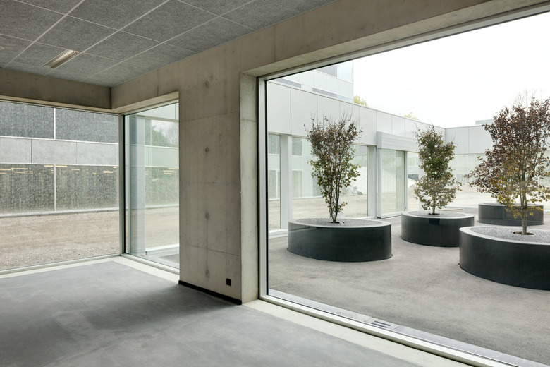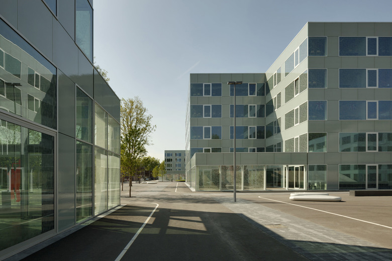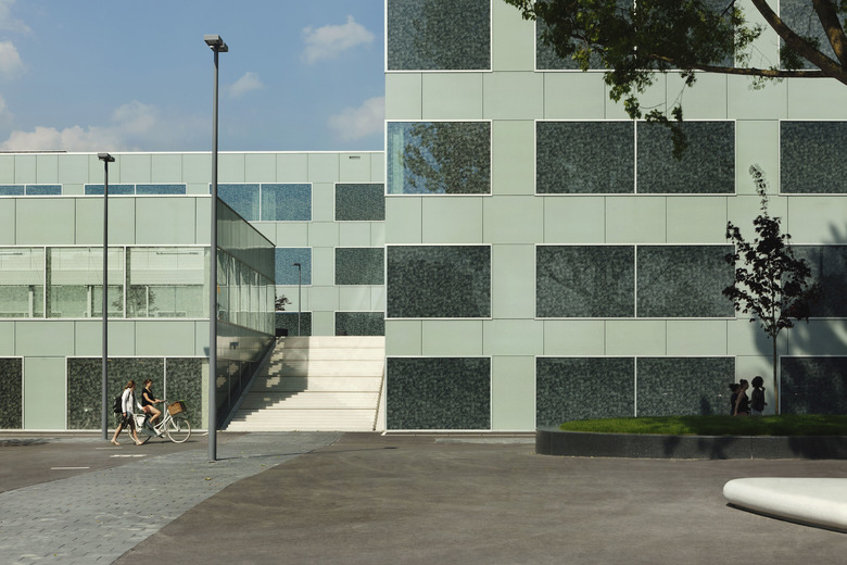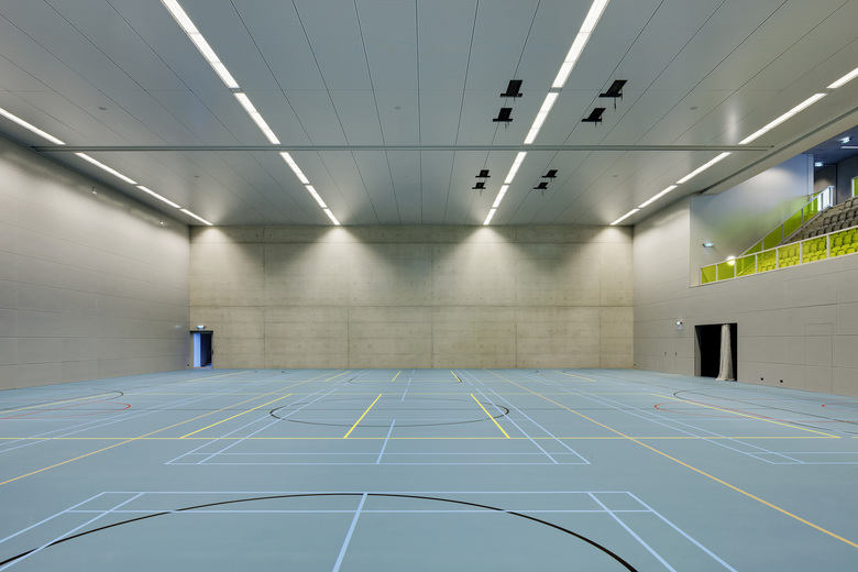 Campus Hoogvliet is a cluster of six buildings that together compose one academic and socially focused campus, located just outside of Rotterdam. These six new buildings–a sports center, an art studio, a safety academy, 100 residential units within one building, and two schools–have been plugged into a programmed tarmac that communicates the campus' boundary, and includes custom designed seating, a running track, and other place-making denotations. The campus’ immediate surroundings are characterized by mid-twentieth century housing developments–which were prolifically constructed during its booming period of post-WWII growth–and the campus aims to rectify the social and cultural deterioration that coupled the demolition of this once historic village.
