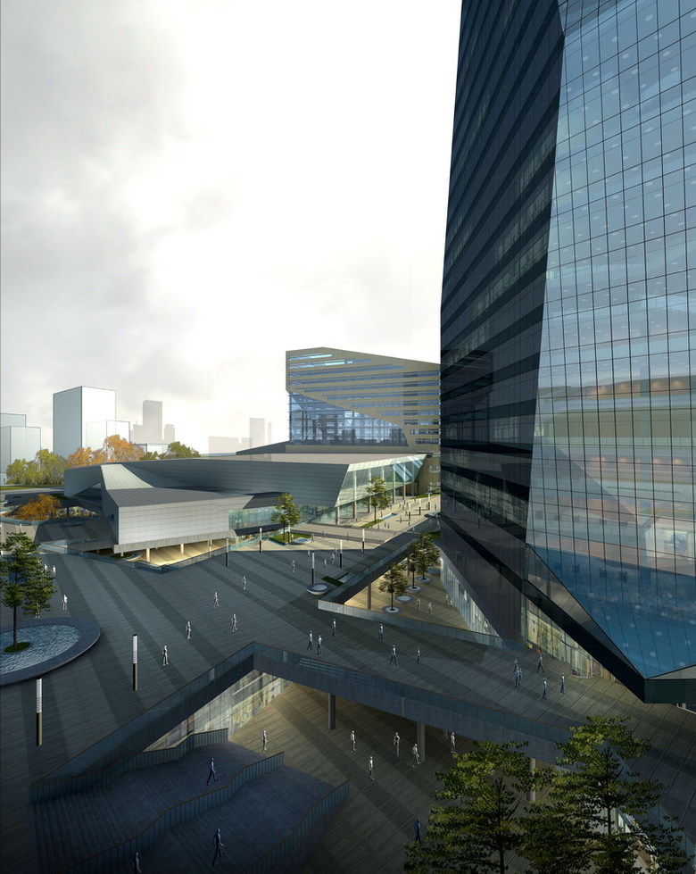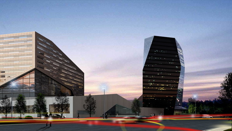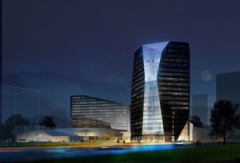 The Coal Chemistry R&D Complex is a hi-tech regional innovation and entrepreneurship park complex. It consists of a 30,000 sqm office building, a 300-bed four star hotel, an exhibition hall and a trading center. Inspired by the coal industry and its local landscape, the design creates a new landmark for Shanxi in the new century. The overall scheme seeks a metaphorical expression of the coal mining landscape, from its natural geological layered origins to the manmade opening and sculpting of the earth and its minerals. The hotel and offices are housed in two separate buildings, and are strategically positioned to achieve two objectives– the creation of a new central plaza, and to allow an appropriate amount of sunlight to reach the north-facing plaza. The vibrant civic space is completed by a new sunken plaza integrated in the section by a series of ramps and stairs connected to the central and north-facing plazas.