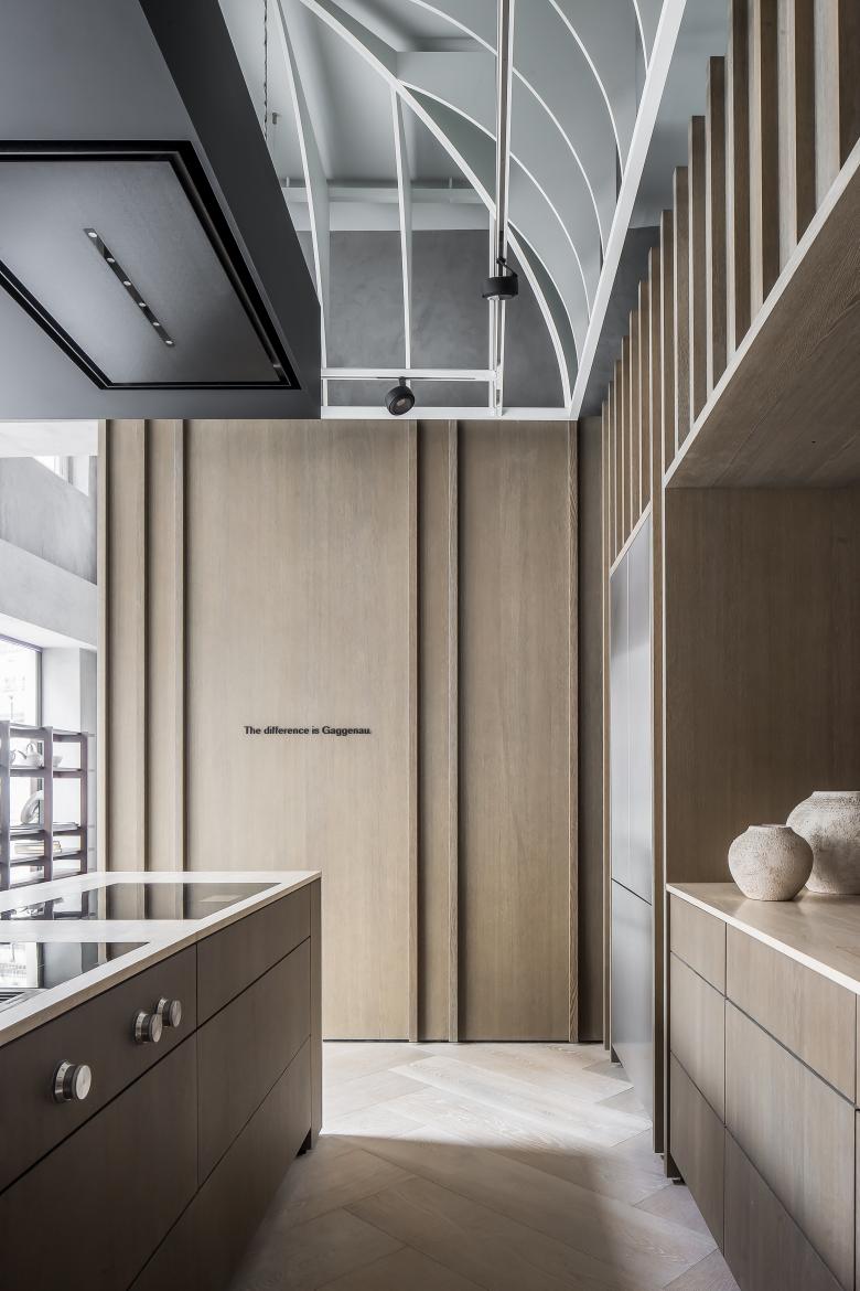 In a charming 18th century building on Boulevard Saint-Germain, history unfolds. Lightweight dome structures refer to France's advanced 19th century architecture. The wooden staircase with iron railings was restored to honour the Belle Epoque. Alongside it, a scenic toile displays the origins of Gaggenau, subtly interweaving the histories of brand and city.