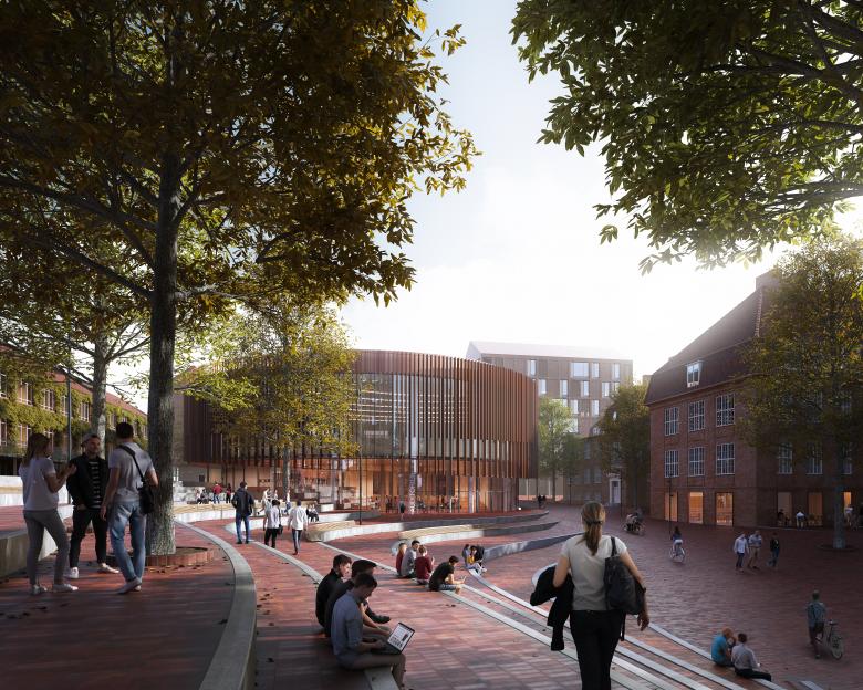 Flexible study environments and sustainable solutions combined with high architectural qualities. These are the key elements in the future Aarhus BSS. The ambition is to create a new landmark for the city of Aarhus and a meeting point in the University City - the upcoming city-integrated campus at Aarhus University. Particularly significant will be the large auditorium, which will be established as a rotunda in glass and aluminium in the central square and thus become a spectacular centre of the campus.