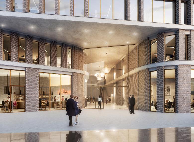 Historically, the district was a part of Bryn Farm and Teisen Farm. During the 1800s, four of Christiania's largest brickworks were established in the area, and Bryn Train Station was used as a logistics line. The project consists of three office buildings located on a base that handles the large terrain drop on the site. The base floors are designed in concrete and houses Bertel O. Steen's new car complex with access from the south side of the plot. The office buildigs have access from the north and differ in terms of expression from the base as the facades are designed in brick.