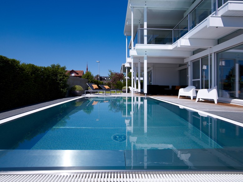 Eine ganz persönliche Wohlfühloase zum Geniessen, Relaxen und Schwimmen. Ein modernes Wohnhaus wurde harmonisch mit einem Edelstahl Swimmingpool kombiniert.