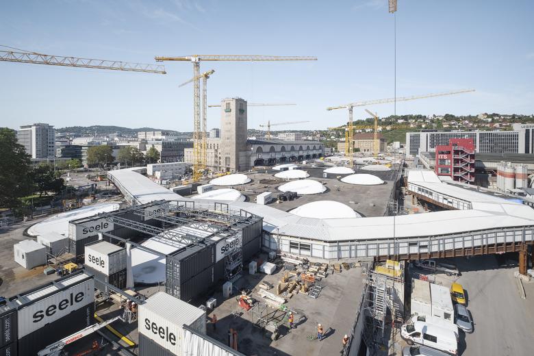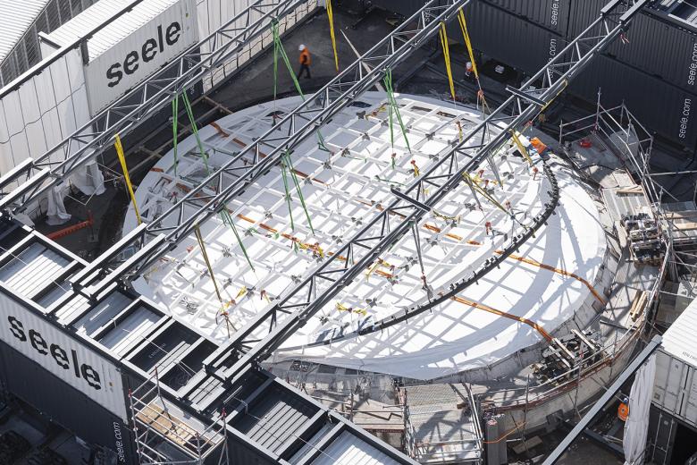 Assembly of the steel construction segments on the Stuttgart 21 construction site.
