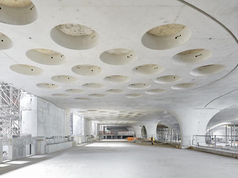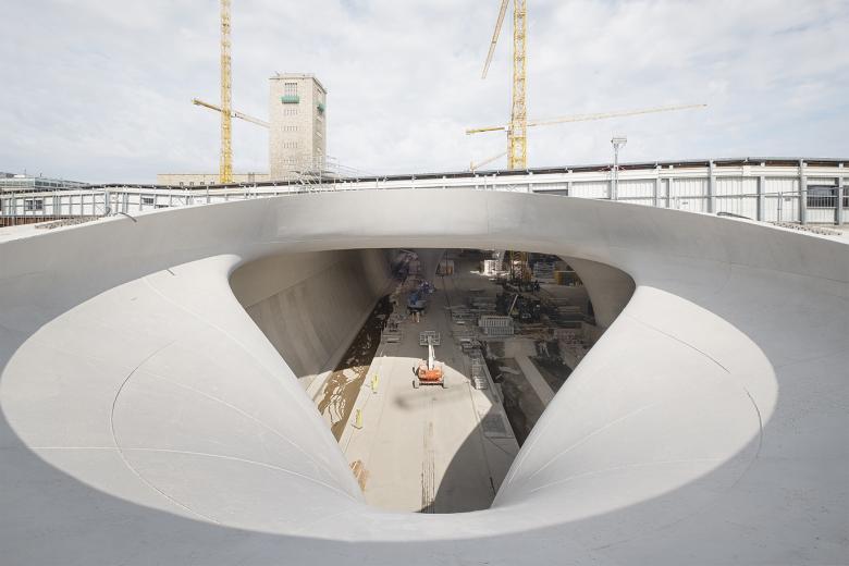 This weekend, half-time was celebrated in Stuttgart. We have now completed 14 of the 28 chalice-shaped concrete supports which form the roof of the new main railway station. The underground train hall will be illuminated by huge skylights, creating a bright, welcoming ambiance. Visitors will be able to walk on the station's roof, which will create a new urban space right next to the Schlossgarten park.