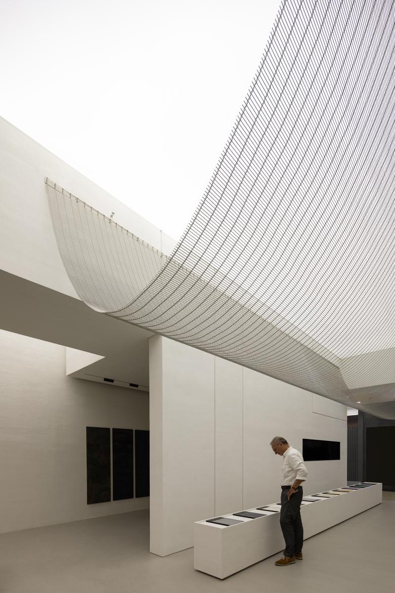 Main materials: handmade paint, micro-cement, metal mesh, concrete, membrane